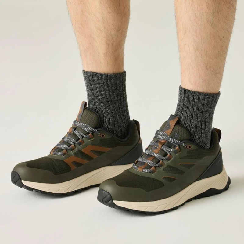 Férfi sportcipő, Prémium túracipő – ISOTEX vízálló membránnal, könnyû EVA középtalppal, Ez a technikai túracipő légáteresztő, kötött felsőrésszel és ISOTEX membránnal készült, amely megbízható vízállóságot és optimális légáteresztést biztosít változékony időjárási körülmények között. A rugalmas és könnyû talpszerkezet egész napos komfortot nyújt aktív használat során., Főbb jellemzők:, Légáteresztő, szövött kötött felsőrész, ISOTEX membrán a vízálló és légáteresztő védelemért, TECFOAM formázott, nyitott cellás talpbetét a rugalmas és kényelmes alátámasztásért, Kopásálló TPR külső talpegység a tartósságért, EVA középtalp a könnyû, rugalmas és komfortos talp alatti érzetért, Ajánlott:, Túrázáshoz, kiránduláshoz és mindennapi aktív szabadtéri használatra. Ideális választás azok számára, akik könnyû, vízálló és kényelmes technikai lábbelit keresnek., Fenntarthatóság:, Tartós kialakítása hosszú élettartamot biztosít, amely hozzájárul a felelős termékhasználathoz és a csökkentett környezeti terheléshez.
