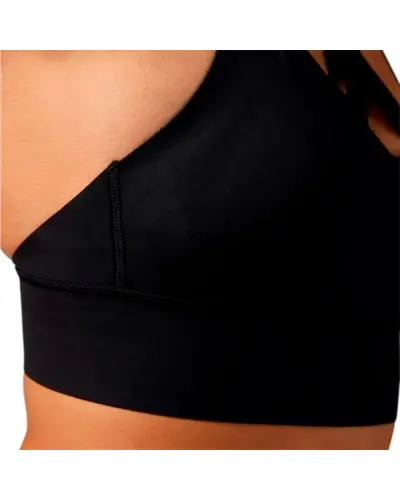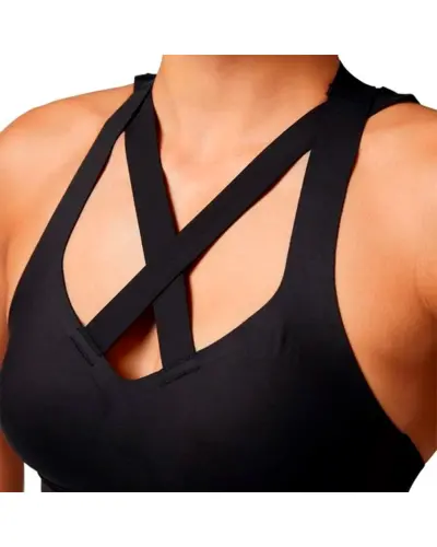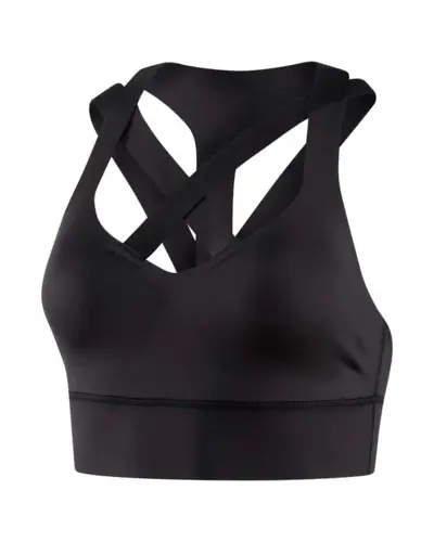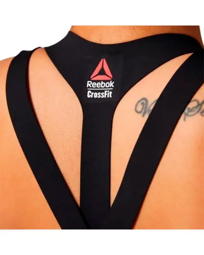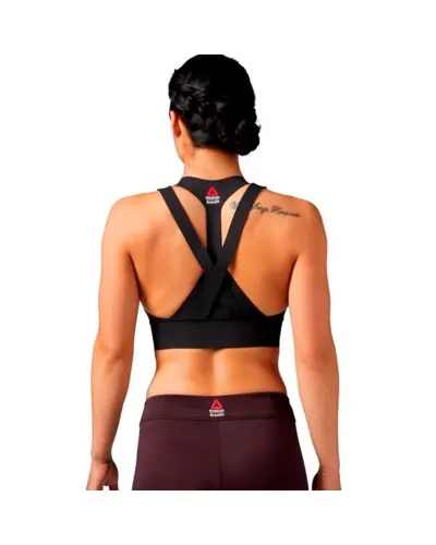 Find a fashion silhouette with performance benefits with this bonded bra.  Polyester with elastane fabrication. Speedwick moisture management technology. Antimicrobial lining helps prevent odors.  Fully bonded construction sits flat against skin to help reduce chafing.  Double straps for additional support. CrossFit-specific fit. Reebok CrossFit branding.