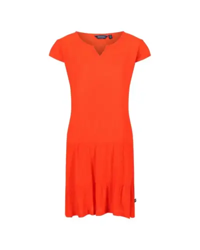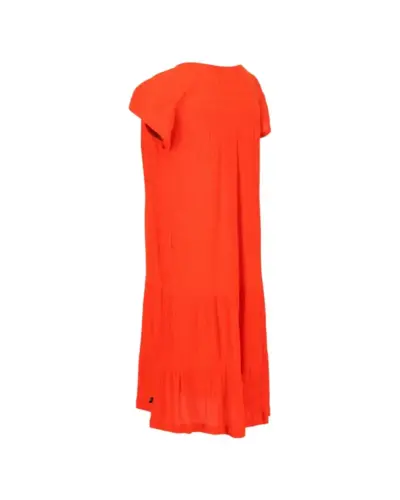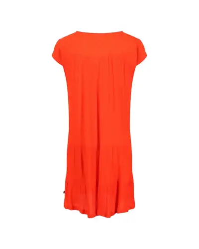női ruha, Ráncolt 100% viscose anyag (színtől függő anyagösszetétel), Hímzett Coolweave 100% fenntartható pamut anyag (színtől függő anyagösszetétel), V szegés a nyakkivágásnál, Rövid ujjak, Derékrészen megköthető