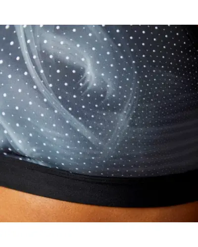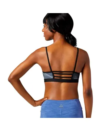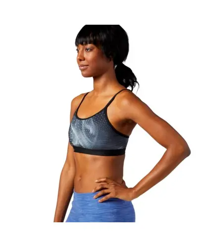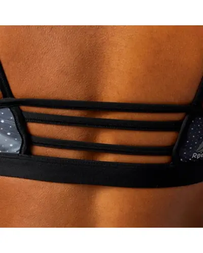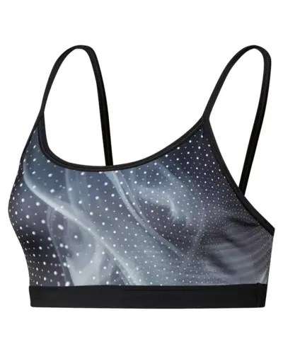 Go against the flow in our rebellious skinny strap design.  Coverage in the front with a strappy back to keep up with your style. Our unique blend of super supportive, sweat-wicking fabrics is designed for you. Mesh back to keep you cool even through any workout.  Cymatic all-over print for added style.