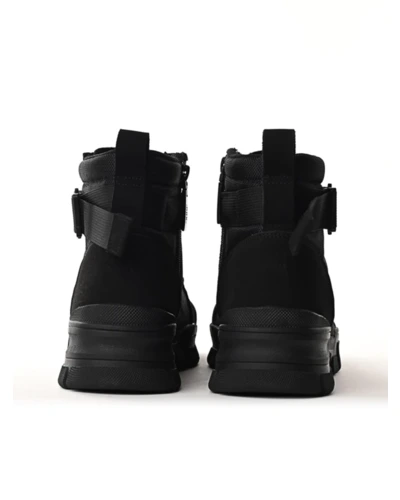A REBEL női cipő most téliesített verzióban is elérhető! A csatos és cipzáras záródás nemcsak különleges, fesztiválhangulatot idéző részlet, de praktikus viseletet is biztosít. A megerősített textil felsőrész a hidegebb napokon is melegen tartja a lábat, miközben a magas szárú kialakítás extra védelmet ad. A monokróm színek letisztult, mégis karakteres megjelenést nyújtanak, a masszív járórész pedig gondoskodik a tartósságról – akár városi túrán, akár a mindennapi rohanásban. Ha egy divatos, nőies, de strapabíró sneakert keresel, amit bármikor felvehetsz egy „cozy” vagy vagány szett mellé, a REBEL neked készült.