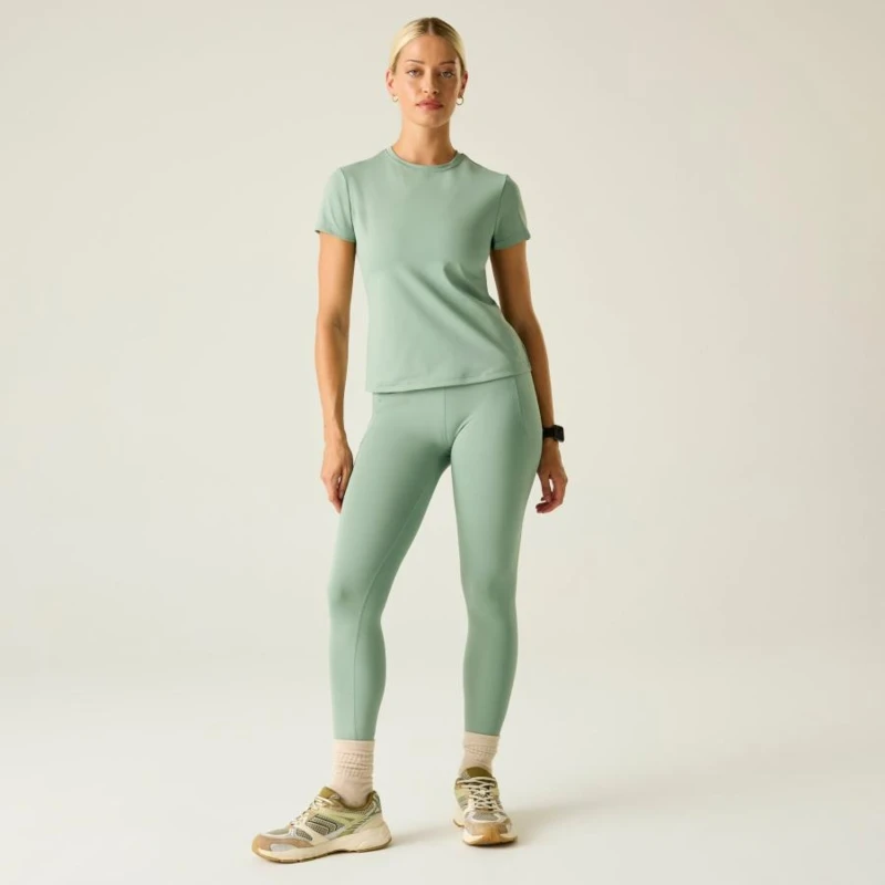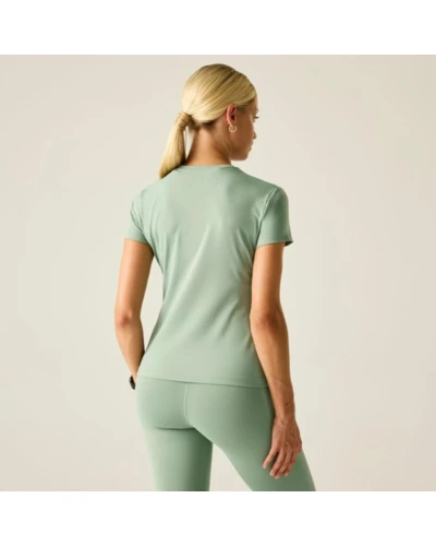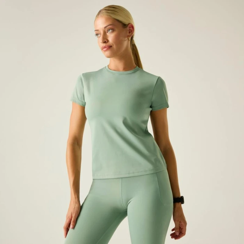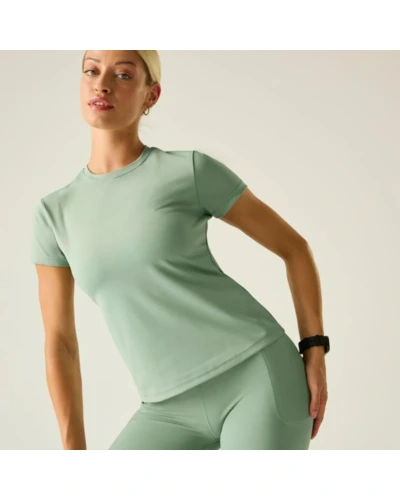 Női gyorsan száradó póló, Prémium női rugalmas sportfelső – újrahasznosított alapanyag, slim fit, komfortos tartás, Ez a női sportfelső 80% újrahasznosított poliészter és 20% elasztán keverékéből készült, rendkívül puha és rugalmas anyagból. A nagyfokú elasztántartalom stabil tartást és kényelmes illeszkedést biztosít, míg a vegyszermentes antibakteriális szagkontroll kezelés segít megőrizni a friss érzetet aktív használat során., Főbb jellemzők:, 80% újrahasznosított poliészter / 20% elasztán rugalmas anyag, Szintetikus vegyszerektől mentes antibakteriális szagkontroll kezelés, Karcsúsított, slim fit szabás, Kerek nyakkivágás, Puha tapintású, testhez simuló konstrukció a kényelmes tartásért, Ajánlott: Női edzőfelsőként ideális fitneszhez, jógához, futáshoz és egyéb aktív sporttevékenységekhez. Kiváló választás, ha fontos a mozgásszabadság, a komfort és a stabil illeszkedés., Fenntarthatóság: Az újrahasznosított poliészter csökkenti az elsődleges nyersanyag-felhasználást, miközben tartós, formatartó anyagszerkezetet biztosít. A minőségi kivitel hosszabb élettartamot tesz lehetővé.