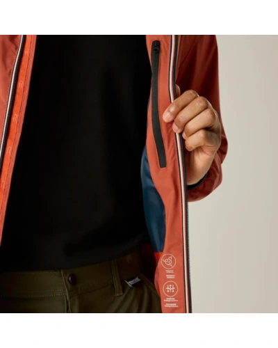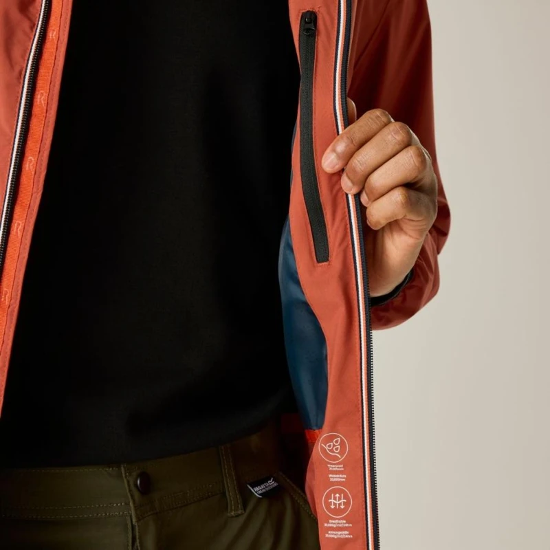 Férfi esőkabát 15000 mm vízálló, Anyag:, 88 g/m? Isotex 15000 vízálló és légáteresztő stretch szövet – újrahasznosított 100% poliészter, Tulajdonságok:, Lélegző kialakítás – 15,000 g/m?/24 óra légáteresztő képesség, Tartós vízlepergető bevonat – extra védelem a nedvesség ellen, Teljesen vízálló, ragasztott varrásokkal – maximális vízállóság, Részben nyomott bélés – egyedi dizájn és extra komfort, Belső cipzáras biztonsági zseb – értékek védett tárolása, Beépített kapucni – extra védelem és praktikus kialakítás, Rugalmas szegély a deréknál, mandzsettáknál és kapucni peremén – testhezálló és kényelmes illeszkedés, 2 cipzáras alsó zseb – biztonságos és praktikus tárolási lehetőség, Újrahasznosított anyagokból készült – fenntartható és környezettudatos választás, Ideális választás túrázáshoz, szabadtéri sportokhoz és változékony időjárási körülményekhez.