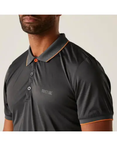 férfi gyorsan száradó póló, 100% gyorsan száradó cirmos poliészter jersey anyag, Bordázott gallér, Jó nedvszívó teljesítmény