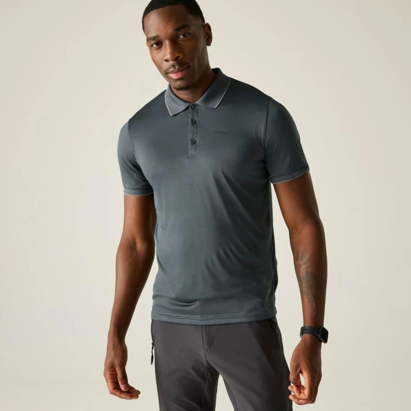 férfi gyorsan száradó póló, 100% gyorsan száradó cirmos poliészter jersey anyag, Bordázott gallér, Jó nedvszívó teljesítmény