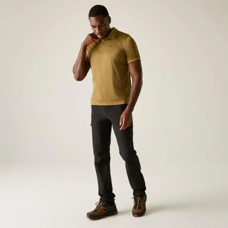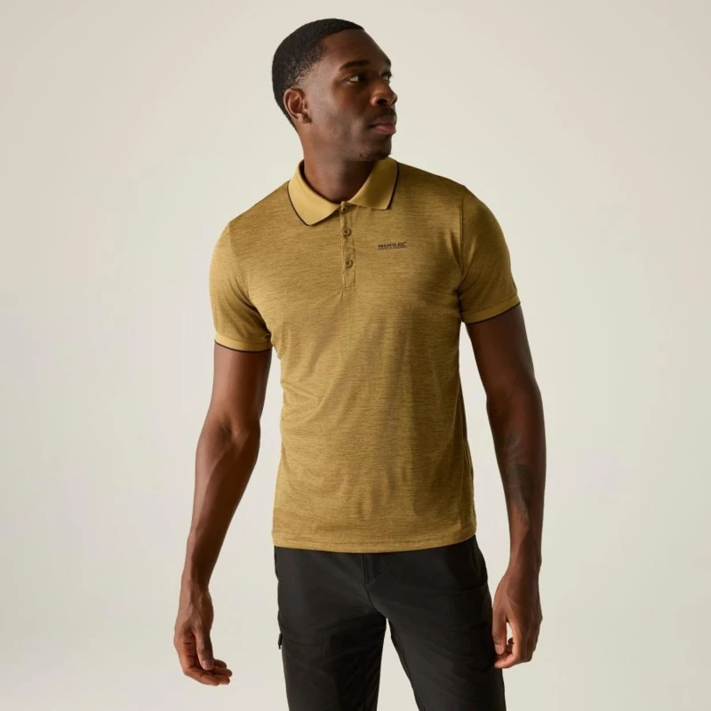 férfi gyorsan száradó póló, 100% gyorsan száradó cirmos poliészter jersey anyag, Bordázott gallér, Jó nedvszívó teljesítmény