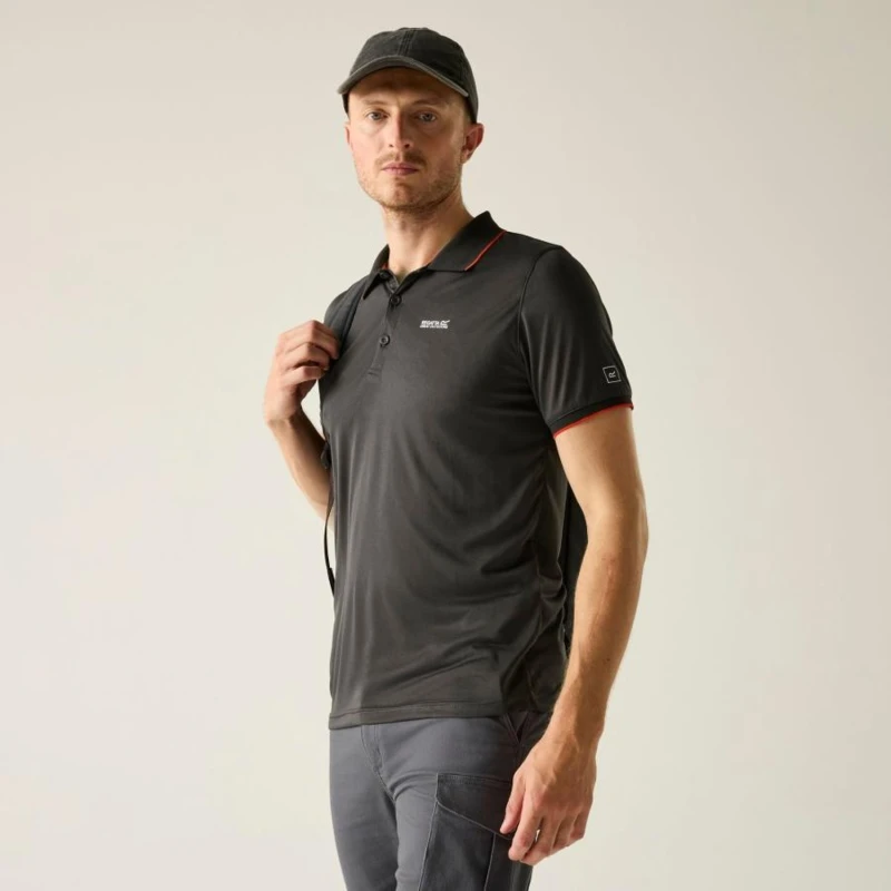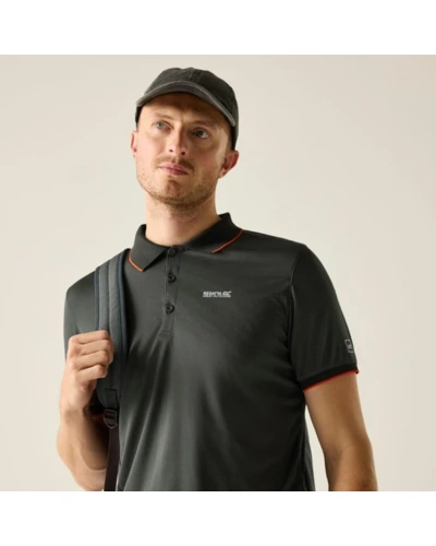 férfi gyorsan száradó póló, 100% gyorsan száradó cirmos poliészter jersey anyag, Bordázott gallér, Jó nedvszívó teljesítmény