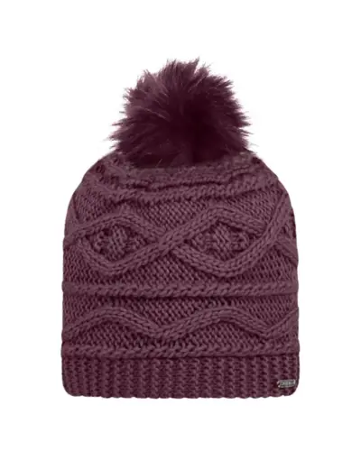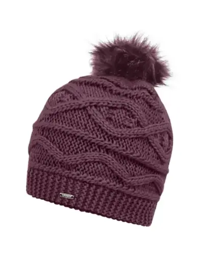 Női kötött sapka, Akril kötött sapka, polár béléssel, mûszőrme bojt, csavart mintával