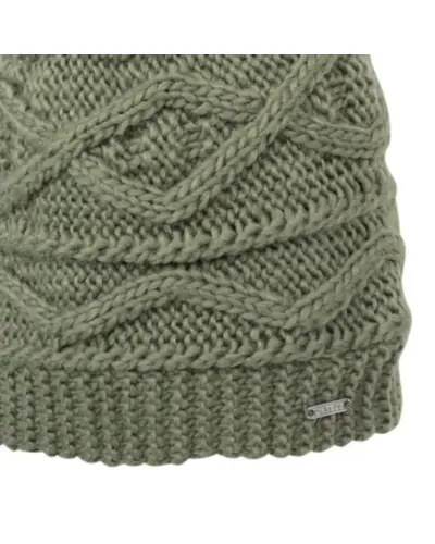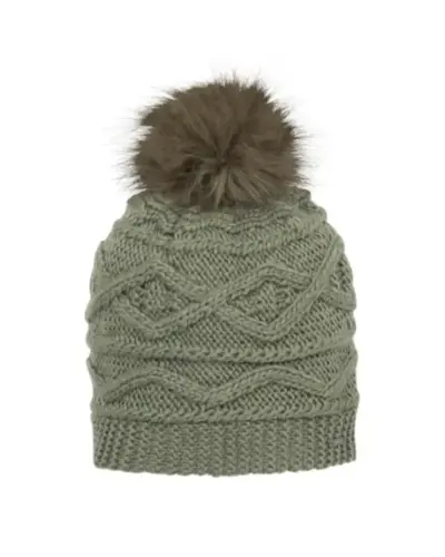 Női kötött sapka, Akril kötött sapka, polár béléssel, mûszőrme bojt, csavart mintával