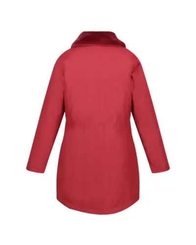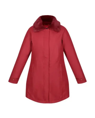 Női téli kabát 5.000 mm, Vízálló és lélegző könnyû Isotex 5.000 mm-ig , poliester twill anyag, Légáteresztő képesség: 5000 g/m2/24 óra, Ragasztott varrások, Tartós vízlepergető felület, Thermoguard szigetelés, Húzózsinórral állítható derékrész, állítható, elrejthető kapucni, szőrmés gallér, 2 alsó zseb, Állítható mandzsettabőség patentos rögzítéssel