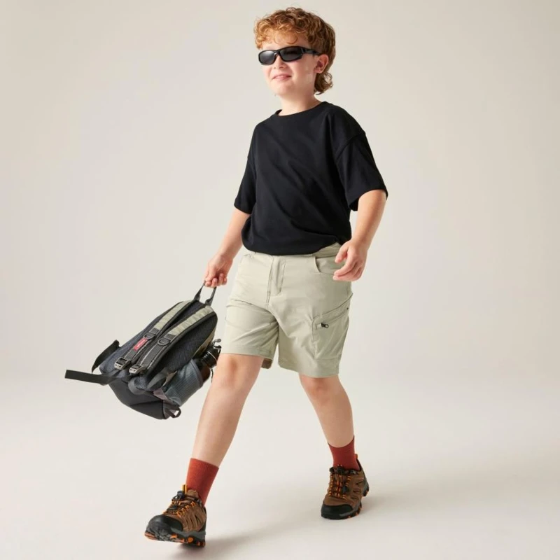 Gyerek rövidnadrág, Prémium gyerek technikai rövidnadrág – ultrarugalmas anyag, PFC-mentes vízlepergető kivitel, UPF 50+ védelemmel, Ez a könnyû gyerek technikai rövidnadrág gyorsan száradó, 88% poliamid és 12% elasztán összetételû ultrarugalmas anyagból készült, amely maximális mozgásszabadságot biztosít aktív használat során. Tengervízben történő használatra is alkalmas, így ideális választás nyári szabadtéri és vízparti programokhoz., Főbb jellemzők:, PFC-mentes tartós vízlepergető bevonat, Gyorsan száradó technikai anyag, Cipzáras slicc 7 éves kortól, Több praktikus zseb, 1 cipzáras szárzseb, Tengervízben történő használatra alkalmas kialakítás, UV-védelem (UPF 50+), 88% poliamid / 12% elasztán ultrarugalmas alapanyag, Ajánlott:, Strandoláshoz, vízi sportokhoz, kiránduláshoz és aktív nyári programokhoz. Ideális választás mozgékony gyermekek számára, akik könnyû, gyorsan száradó és tartós rövidnadrágot keresnek., Fenntarthatóság:, PFC-mentes vízlepergető kezeléssel készült, amely csökkenti a környezeti terhelést, miközben megőrzi a magas technikai teljesítményt és tartósságot.
