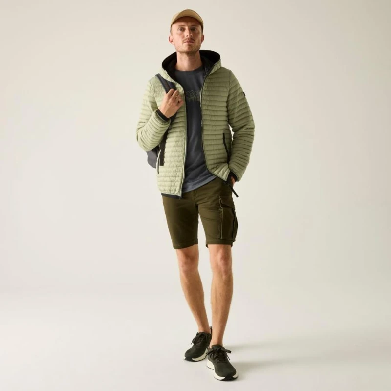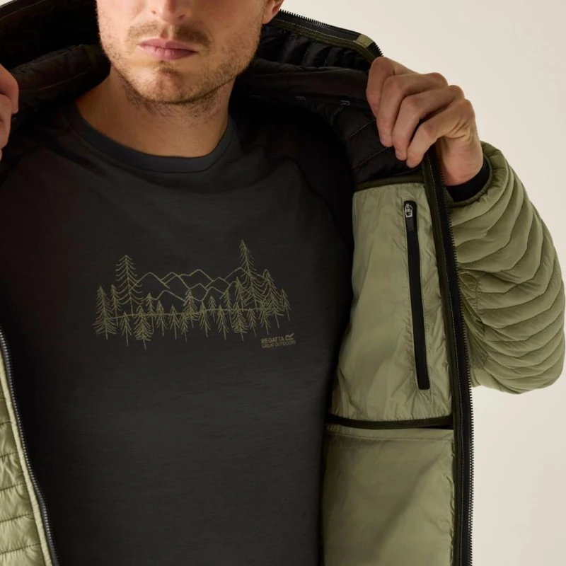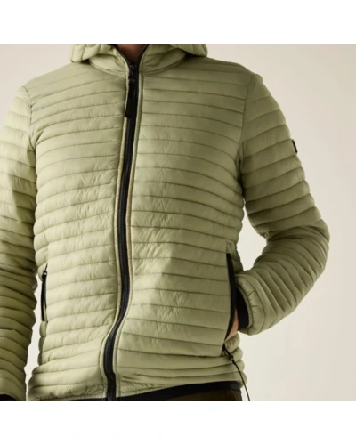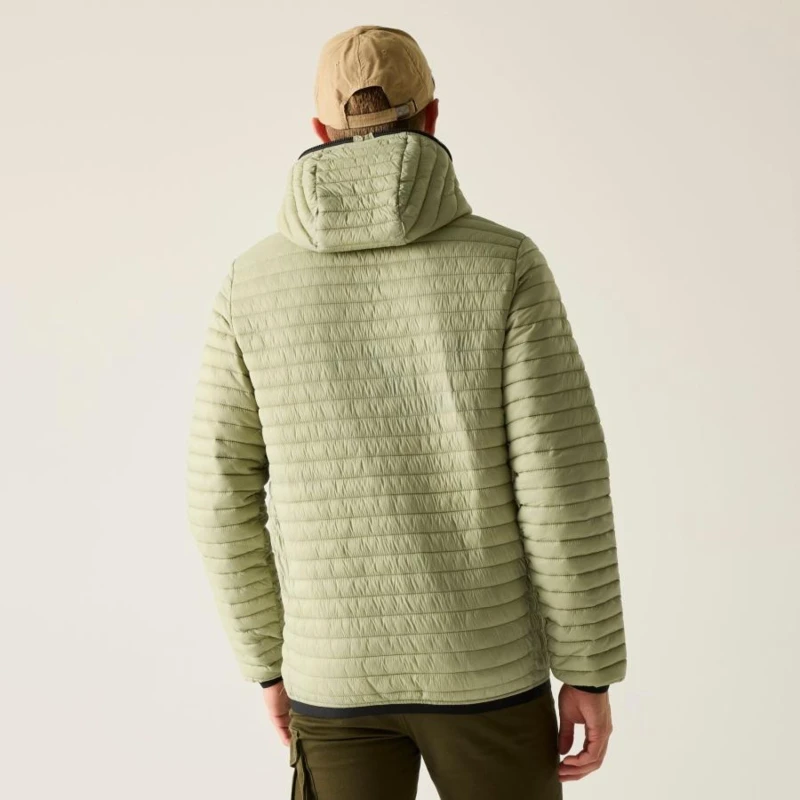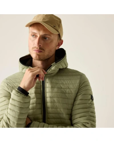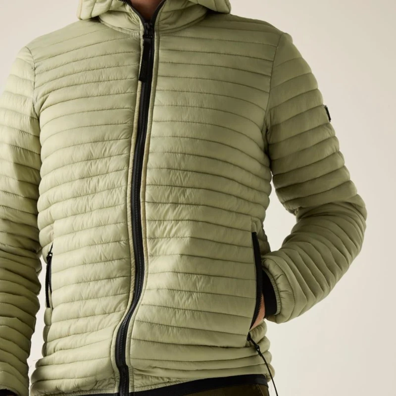 Férfi vékony steppelt kabát, Könnyû, újrahasznosított, bélelt kabát városi stílusban (120g töltet), Ez a pehelykönnyû, mégis meleg kabát a letisztult dizájnt ötvözi a környezettudatossággal, ideális átmeneti időre vagy enyhébb téli napokra. A 120 g prémium újrahasznosított szintetikus töltet megfelelő szigetelést biztosít, miközben a kabát könnyed és jól pakolható marad., 100% poliamid könnyû 20d külső anyag – 37 g/m?, Tartós vízlepergető bevonat (DWR) – védelmet nyújt az enyhe csapadékkal szemben, Feather free – 120 g prémium újrahasznosított szintetikus pehelytöltet – vegán és meleg, Poliamid bélés – kellemes tapintású belső, Különleges részlet: a középső cipzár egészen a kapucni csúcsáig záródik – modern, technikai megjelenést ad, 2 alsó cipzáras zseb – kézmelegítő és tároló, Belső cipzáras biztonsági zseb – értéktárgyakhoz, Újrahasznosított anyagokból készült, Ez a kabát ideális választás azoknak, akik könnyû, kényelmes, modern és fenntartható kabátot keresnek. Tökéletes városi viselethez, utazáshoz vagy akár aktív mindennapokra is.