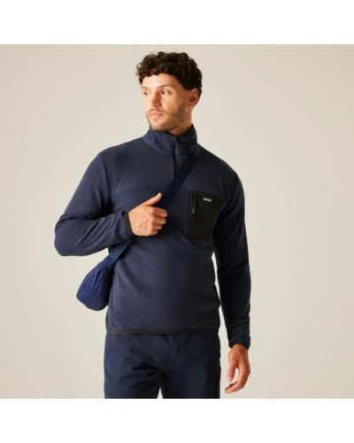 Férfi cipzáros felső, 100% poliészter, kéttónusú texturált szövet bolyhos hátoldallal, 210gsm., Két cipzáras alsó zseb., Rugalmas szegély a mandzsettákon., Újrahasznosított anyagokból készült.