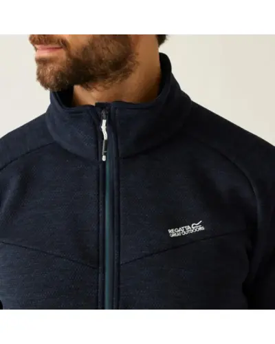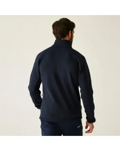 Férfi cipzáros felső, 100% poliészter, kéttónusú texturált szövet bolyhos hátoldallal, 210gsm., Két cipzáras alsó zseb., Rugalmas szegély a mandzsettákon., Újrahasznosított anyagokból készült.