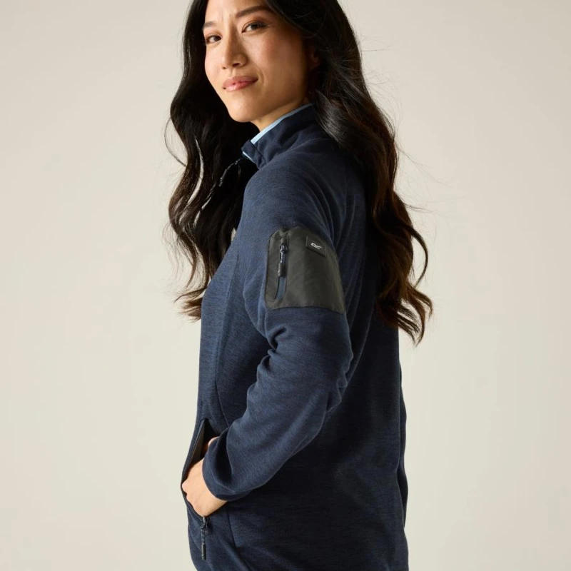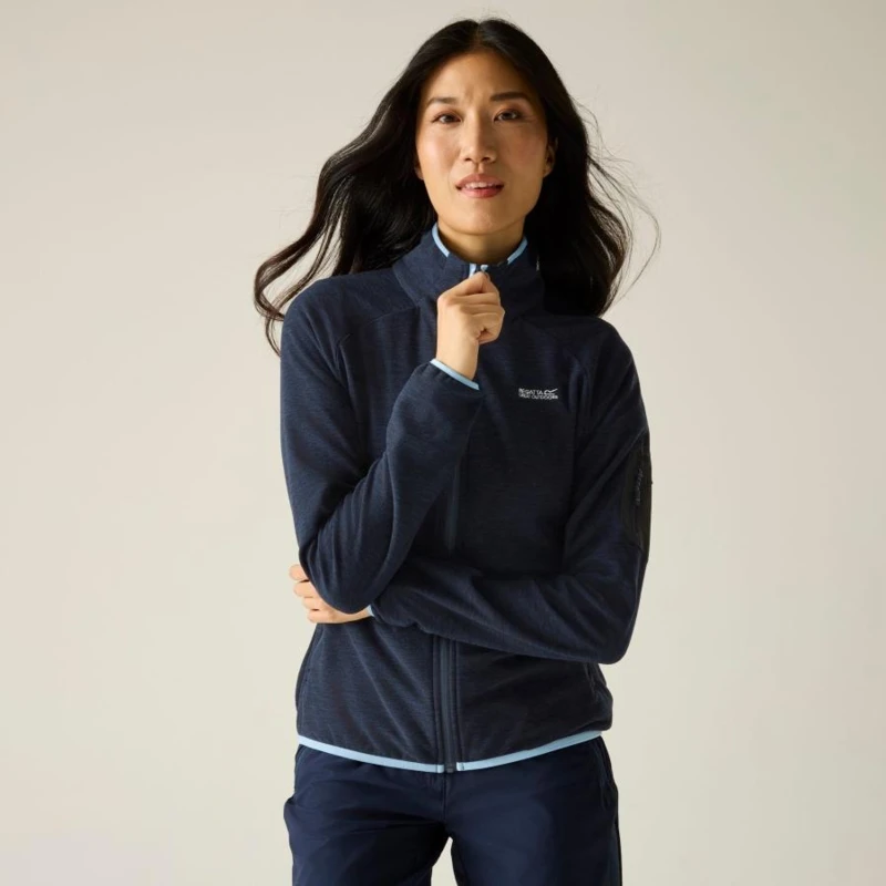 Női polár felső, Prémium női könnyû polár felső marl bolyhozott fleece, 150 g/m?, Ez a női könnyû polár felső 100% poliészter marl, bolyhozott hátoldalú fleece anyagból készült, 150 g/m? súlyban. A puha, meleg belső felület kellemes komfortot biztosít hûvösebb időben, miközben a könnyû konstrukció ideálissá teszi rétegezéshez és aktív használathoz., Főbb jellemzők:, 100% poliészter marl bolyhozott polár anyag, 150 g/m?, 2 alsó cipzáras zseb, 1 cipzáras karzseb, Rugalmas szegély a gallérnál, a mandzsettán és az alsó részen, Ajánlott: Női polár felsőként ideális túrázáshoz, kiránduláshoz, utazáshoz és mindennapi viselethez. Kiváló középréteg hûvösebb időben, illetve önálló rétegként átmeneti időszakban., Fenntarthatóság: A tartós poliészter alapanyag hosszú élettartamot biztosít, csökkentve a gyakori ruhacsere szükségességét. A minőségi kivitel több szezonon át megbízható viseletet garantál.