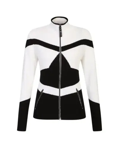 Női kardigán, Viskóz/pamut Jacquard kötött anyag, Fém hatású központi cipzár belső cipzárral és állvédővel, 2 x alsó zseb fém hatású cipzárral