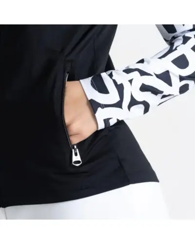 Női core stretch felső, Újrahasznosított meleg belsős stretch szövet - Ilus Core, Fém hatású középső cipzár, cipzár és állvédő, 2 x alsó zseb fém hatású cipzárral