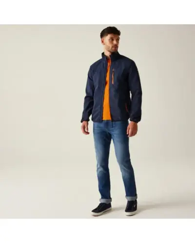 Férfi softshell kabát , Anyag:, 320 g/m? Softshell XPT vízálló szövet, újrahasznosított 98% poliészter / 2% elasztán, hálós hátoldallal, Tulajdonságok:, Lélegző kialakítás 10,000 g/m?/24 óra légáteresztő képesség, Tartós vízlepergető bevonat extra védelem a nedvesség és időjárás viszontagságai ellen, 1 cipzáras mellzseb biztonságos tárolási lehetőség, 2 cipzáras alsó zseb extra praktikus tárolási megoldás, Rugalmas szegély a mandzsettáknál és derékrészen kényelmes és testhezálló illeszkedés, Újrahasznosított anyagokból készült fenntartható és környezettudatos választás, Ideális választás szabadtéri tevékenységekhez, aktív mozgáshoz és változékony időjárási körülményekhez.
