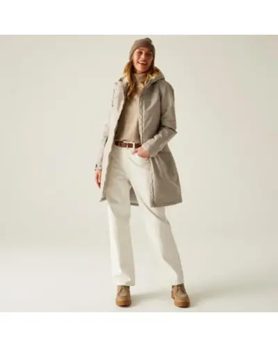 Női bélelt meleg kabát 10000 vízálló és lélegző, Vízálló és lélegző újrahasznosított Isotex 10000 bevonatos poliészter anyag, Vízálló és lélegző újrahasznosított Isotex 10000 100% poliészter, gyapjú hatású márványos mintás anyag, Légáteresztési érték: 10,000 g/m?/24 óra, Tartós vízlepergető bevonat, Könnyû újrahasznosított Thermoguard szigetelés, 100% poliészter taft bélés, Ragasztott varratok a maximális vízállóság érdekében, Belső biztonsági zseb, Beépített kapucni, Kétirányú cipzár elöl, 2 alsó zseb, Ez a kabát ideális választás azok számára, akik egy könnyû, de meleg és vízálló kabátot keresnek. , Az újrahasznosított Isotex 10000 anyag biztosítja a vízállóságot és a légáteresztést, míg a könnyû , Thermoguard szigetelés megfelelő meleget nyújt. A gyapjú hatású, márványos mintás anyag elegáns , megjelenést kölcsönöz a kabátnak. A beépített kapucni és a ragasztott varratok extra védelmet nyújtanak , a nedvességgel szemben, míg a belső biztonsági zseb és a két alsó zseb praktikus tárolási, lehetőségeket kínál. A kabát újrahasznosított anyagokból készült
