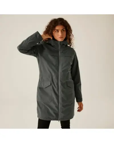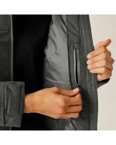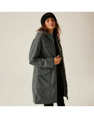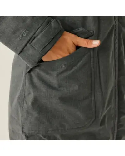 Női bélelt meleg kabát 10000 vízálló és lélegző, Vízálló és lélegző újrahasznosított Isotex 10000 bevonatos poliészter anyag, Vízálló és lélegző újrahasznosított Isotex 10000 100% poliészter, gyapjú hatású márványos mintás anyag, Légáteresztési érték: 10,000 g/m?/24 óra, Tartós vízlepergető bevonat, Könnyû újrahasznosított Thermoguard szigetelés, 100% poliészter taft bélés, Ragasztott varratok a maximális vízállóság érdekében, Belső biztonsági zseb, Beépített kapucni, Kétirányú cipzár elöl, 2 alsó zseb, Ez a kabát ideális választás azok számára, akik egy könnyû, de meleg és vízálló kabátot keresnek. , Az újrahasznosított Isotex 10000 anyag biztosítja a vízállóságot és a légáteresztést, míg a könnyû , Thermoguard szigetelés megfelelő meleget nyújt. A gyapjú hatású, márványos mintás anyag elegáns , megjelenést kölcsönöz a kabátnak. A beépített kapucni és a ragasztott varratok extra védelmet nyújtanak , a nedvességgel szemben, míg a belső biztonsági zseb és a két alsó zseb praktikus tárolási, lehetőségeket kínál. A kabát újrahasznosított anyagokból készült