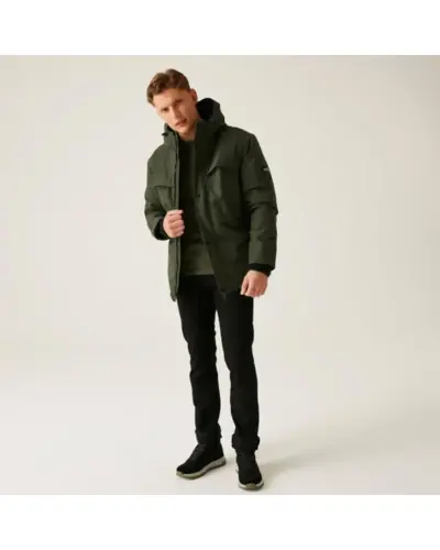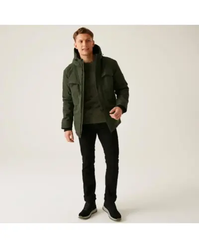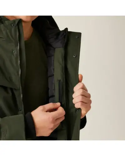 Férfi bélelt vízálló kabát 10.000 mmm, Ez a vízálló és lélegző kabát ideális választás hideg és nedves időjárási körülményekhez. , Anyag: Vízálló és lélegző Isotex 10000 újrahasznosított 100% poliészter anyag., Lélegzőképesség: 10,000g/m?/24 óra., Felületkezelés: Tartós vízlepergető bevonat., ragasztott varrások: Teljes vízállóságot biztosítanak., Szigetelés: Közepes súlyú újrahasznosított Thermoguard szigetelés., Bélés: Cire baffle bélés a kapucniban és a testben., a \"\"cire baffle bélés\"\" kifejezés olyan bélést jelent, amely fényes, sima, vízlepergető felületû anyagból\", készült, és a baffle szerkezetû panelek biztosítják az egyenletes szigetelést. , Ez a kombináció kényelmes, meleg és időjárásálló ruhadarabot eredményez., Belső cipzáras biztonsági zseb, 2 alsó cipzáras zseb, 2 mellkasi patch zseb, Kapucni: Integrált kapucni állítókkal., Mandzsetták: Belső viharmandzsetták., Fenntarthatóság: Újrahasznosított anyagokból készült., Ez a kabát tökéletes választás azok számára, akik meleg, kényelmes és környezetbarát viseletet, keresnek a hideg, szeles és nedves időjárásban történő szabadtéri tevékenységekhez.\"
