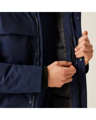 Férfi bélelt vízálló kabát 10.000 mmm, Ez a vízálló és lélegző kabát ideális választás hideg és nedves időjárási körülményekhez. , Anyag: Vízálló és lélegző Isotex 10000 újrahasznosított 100% poliészter anyag., Lélegzőképesség: 10,000g/m?/24 óra., Felületkezelés: Tartós vízlepergető bevonat., ragasztott varrások: Teljes vízállóságot biztosítanak., Szigetelés: Közepes súlyú újrahasznosított Thermoguard szigetelés., Bélés: Cire baffle bélés a kapucniban és a testben., a \"\"cire baffle bélés\"\" kifejezés olyan bélést jelent, amely fényes, sima, vízlepergető felületû anyagból\", készült, és a baffle szerkezetû panelek biztosítják az egyenletes szigetelést. , Ez a kombináció kényelmes, meleg és időjárásálló ruhadarabot eredményez., Belső cipzáras biztonsági zseb, 2 alsó cipzáras zseb, 2 mellkasi patch zseb, Kapucni: Integrált kapucni állítókkal., Mandzsetták: Belső viharmandzsetták., Fenntarthatóság: Újrahasznosított anyagokból készült., Ez a kabát tökéletes választás azok számára, akik meleg, kényelmes és környezetbarát viseletet, keresnek a hideg, szeles és nedves időjárásban történő szabadtéri tevékenységekhez.\"