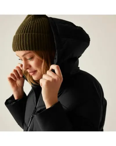 Női bélelt kabát, Női vízlepergető télikabát Warmloft szigeteléssel könnyû, mégis meleg, Ez a könnyû, mégis kifejezetten meleg télikabát modern megjelenést és megbízható védelmet nyújt a hideg napokon. A vízlepergető bevonattal ellátott mikro taslan anyag és a pehelyhatású, újrahasznosított Warmloft szintetikus szigetelés gondoskodik a száraz és komfortos érzetről, legyen szó városi sétáról vagy szabadtéri programról., Anyag: 100% poliészter mikro taslan 85 g/m?, Szigetelés: Warmloft pehelyhatású, újrahasznosított szintetikus töltet 250 g/m?, Bélés: 100% poliészter taft, Kapucni: állítható, praktikus húzózsinórral, Zsebek: 2 cipzáras alsó zseb, belső biztonsági zseb, Derék: állítható húzózsinórral a testre szabott illeszkedésért, Fenntarthatóság: újrahasznosított anyagokból készült, Ajánlott: téli mindennapokra, városi viselethez vagy könnyû szabadtéri tevékenységekhez, Kényelmes, stílusos, környezettudatos ideális választás hideg időben.
