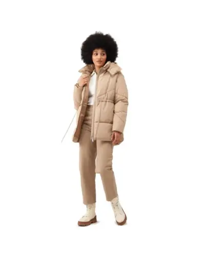 Női bélelt kabát, Újrahasznosított 100% poliészter vízlepergető mikrotaslan, Tartós vízlepergető felület, nagy steppelés, Feather Free – prémium minőségû újrahasznosított szintetikus pehelyszigetelés, 100% poliészter taft bélés, Állítható pamut zsinóros kapucni, Állítható pamut húzózsinór derékrész, 2 alsó zseb, Belső bordás mandzsetta