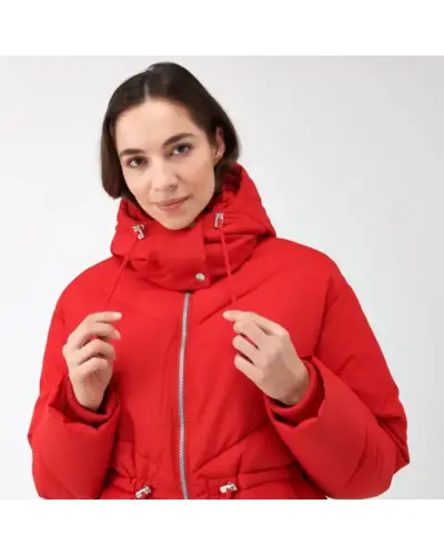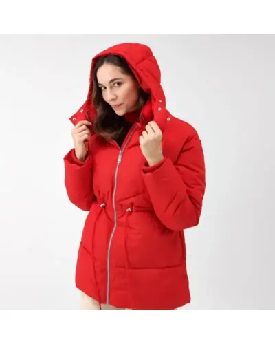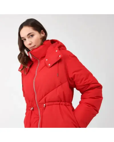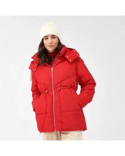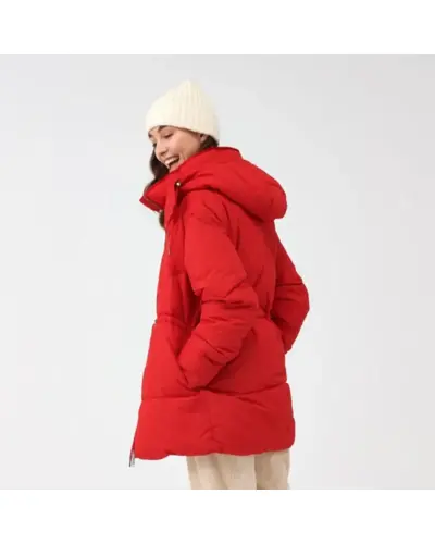 Női bélelt kabát, Újrahasznosított 100% poliészter vízlepergető mikrotaslan, Tartós vízlepergető felület, nagy steppelés, Feather Free – prémium minőségû újrahasznosított szintetikus pehelyszigetelés, 100% poliészter taft bélés, Állítható pamut zsinóros kapucni, Állítható pamut húzózsinór derékrész, 2 alsó zseb, Belső bordás mandzsetta