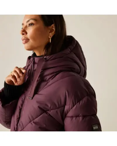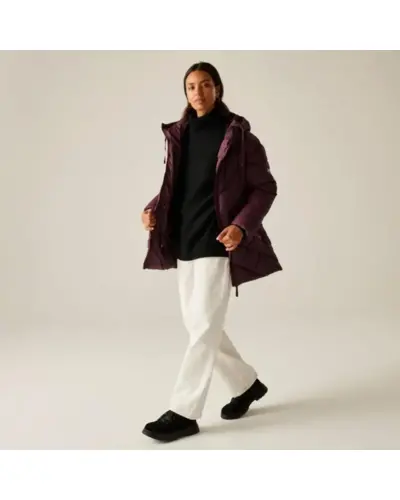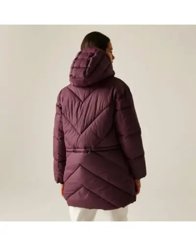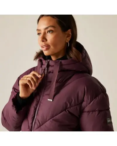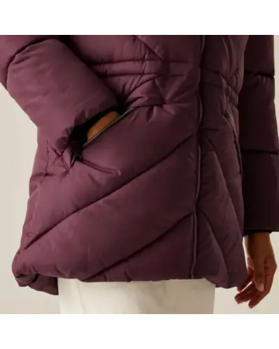 Női bélelt kabát, Könnyed melegség, sportos stílusban – újrahasznosított anyagokból, Ez a modern női télikabát a funkcionalitás és divat tökéletes egyensúlyát kínálja. A mikro taslan poliészter szövet (85 g/m?) rendkívül könnyû, ugyanakkor strapabíró, a tartós vízlepergető bevonat pedig hatékonyan véd az időjárás viszontagságaitól., A kabát szíve a 250g-os Warmloft újrahasznosított szintetikus pehelyhatású szigetelés, amely pehely érzetet biztosít anélkül, hogy állati eredetû lenne – így melegen tart a leghidegebb napokon is. A 100% poliészter taffeta bélés puha érzetet nyújt viselés közben, a belső cipzáras zseb pedig praktikus megoldás értékeid biztonságos tárolására., A fix kapucni karakteres vonalat kölcsönöz a megjelenésnek, amit a díszes húzózsinór és az állítható derékrész még nőiesebbé tesz. A két alsó cipzáras zseb a kényelem mellett a letisztult dizájn része., ? Könnyû, mégis meleg, ? Modern, sportos fazon, ? Környezetbarát anyaghasználat