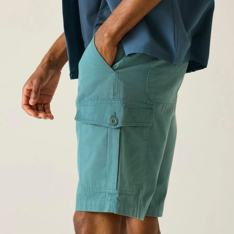 Férfi rövidnadrág, Anyag:, 210 g/m? 100% BCI pamut twill szövet, Tulajdonságok:, Garment washed kivitel puhább tapintás és vintage megjelenés, Többzsebû kialakítás praktikus tárolási lehetőségek, UV-védelem (UPF) maximális védelem a káros napsugarak ellen