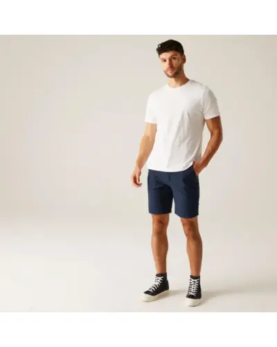 Férfi rövidnadrág, Anyag:, 210 g/m? twill szövet – 96% BCI pamut / 4% elasztán, Tulajdonságok:, Belt loops – praktikus övtartók a kényelmes viseletért, 2 oldalsó zseb – praktikus tárolási lehetőség, 2 hátsó welt zseb márkás gombos záródással – exkluzív részletek, Garment washed kivitel – puhább tapintás és vintage megjelenés, UV-védelem (UPF) – maximális védelem a káros napsugarak ellen