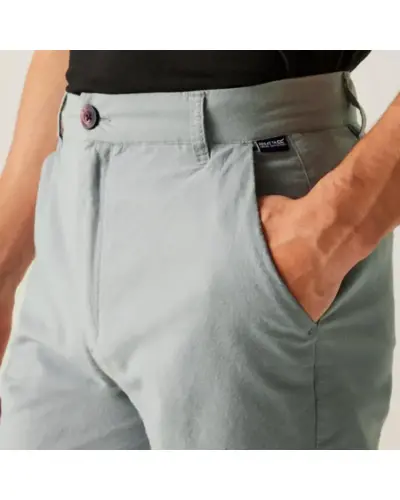 Férfi rövidnadrág, Anyag:, 210 g/m? twill szövet – 96% BCI pamut / 4% elasztán, Tulajdonságok:, Belt loops – praktikus övtartók a kényelmes viseletért, 2 oldalsó zseb – praktikus tárolási lehetőség, 2 hátsó welt zseb márkás gombos záródással – exkluzív részletek, Garment washed kivitel – puhább tapintás és vintage megjelenés, UV-védelem (UPF) – maximális védelem a káros napsugarak ellen