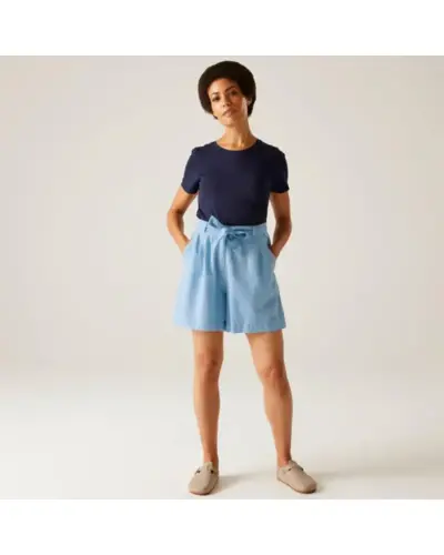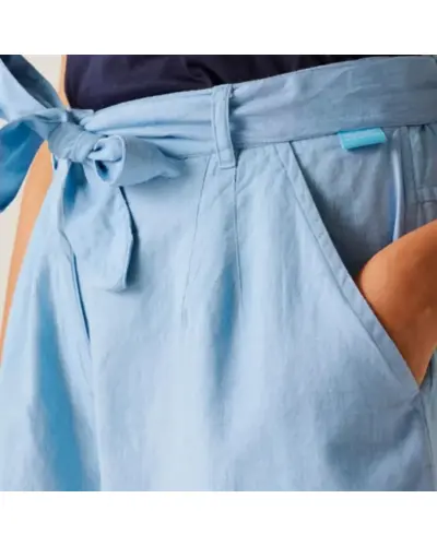 Női pamut-len rövidnadrág, Coolweave 90% pamut/10% len könnyû anyag, Derékban megkötős öv, 2 oldalzseb