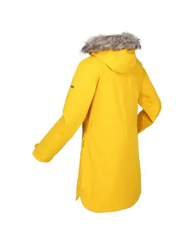 női télikabát , 100%-os vízálló Hydrafort poliészter anyag, Ragasztott varrások, Tartós víztaszító felület, Thermo-Guard hőszigetelés, 100% poliészter taft bélés, Bélése 100% poliészter újrahasznosított bolyhosodásmentes , 170 g/m2-es polár, Belső biztonsági zseb, fix állítható kapucni, levehető mûszőrme szegély, Kétirányban nyitható középső cipzár, 2 mellzseb, Húzózsinórral állítható derékrész, 2 kettős bejáratú alsó zseb kézmelegítő anyaggal, Patenttal állítható csuklóbőség, Ívelt szabású alj
