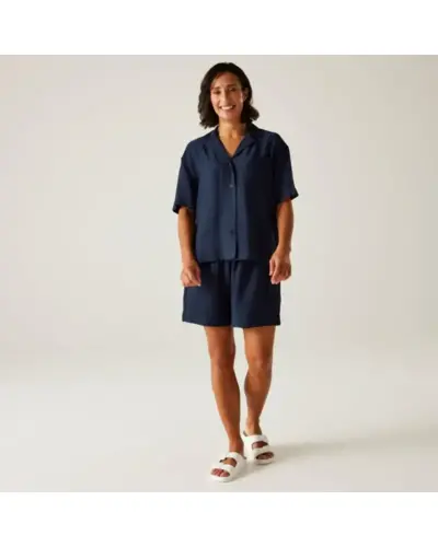 Női blúz, Anyag:, 150gsm, 100% poliészter könnyû, lenhatású szövött anyag, Tulajdonságok:, Revere gallér – elegáns, klasszikus megjelenés, 1 mellzseb – praktikus tárolási lehetőség, Oldalsó osztott alsó él – modern, laza szabás, Koordinált kollekció: Salise shorts (lap 111) & Salise shirt, Ideális választás mindennapi viselethez, ahol a stílus és a funkcionalitás egyaránt fontos.