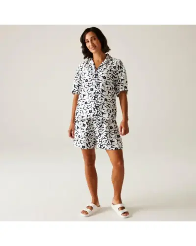 Női short, 150gsm, 100% poliészter, könnyû, lenhatású szövött anyag, Rugalmas derékrész húzózsinórral, 2 oldalsó zseb, Egyszínû és all over print opciók