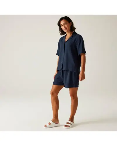 Női short, 150gsm, 100% poliészter, könnyû, lenhatású szövött anyag, Rugalmas derékrész húzózsinórral, 2 oldalsó zseb, Egyszínû és all over print opciók