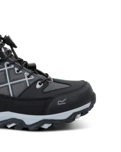 Gyerek túrabakancs, Felsőrész: Tartós, vízálló technikai anyag , szintetikus, segít a víz taszításában, A robusztus kopásgátló háló lehetővé teszi, a könnyû tisztítást, Belső: ISOTEX membrán ideális, légáteresztő és vízszigetelés, A TECFOAM öntött nyitott habbetét biztosítja, kiváló és rugalmas kényelmet a lábnak, F?z?rendszer reteszeővel, A kopásgátló sárvédő véd a törmeléktől, Talp: EVA középtalp ütéselnyelő sarokkal, betét - könnyû párnázás és stabilitás, A tartós gumi külső talp kiváló tapadást biztosít