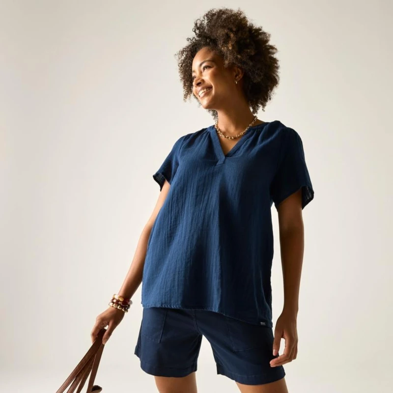 Női blúz, Prémium női könnyû pamut blúz – cheesecloth anyag, laza szabás, 120 g/m?, Ez a női blúz 100% pamut cheesecloth anyagból készült, 120 g/m? súlyban. A könnyû, légies szövésû pamut kellemes komfortot és természetes szellőzést biztosít meleg időben. A laza szabás és a rövid ujj kényelmes, könnyed megjelenést eredményez, ideális nyári viselethez., Főbb jellemzők:, 100% pamut cheesecloth anyag, 120 g/m?, Rövid ujjú kialakítás, Laza, kényelmes szabás, Könnyû, jól szellőző konstrukció, Ajánlott: Női nyári blúzként ideális mindennapi viselethez, utazáshoz, városi programokhoz és könnyû szabadtéri tevékenységekhez. Kiváló választás meleg időben, amikor fontos a természetes anyag és a komfort., Fenntarthatóság: A természetes pamut alapanyag kellemes viseletet és megfelelő tartósságot biztosít. A minőségi kivitel hozzájárul a hosszabb élettartamhoz, csökkentve a gyakori ruhacsere szükségességét.