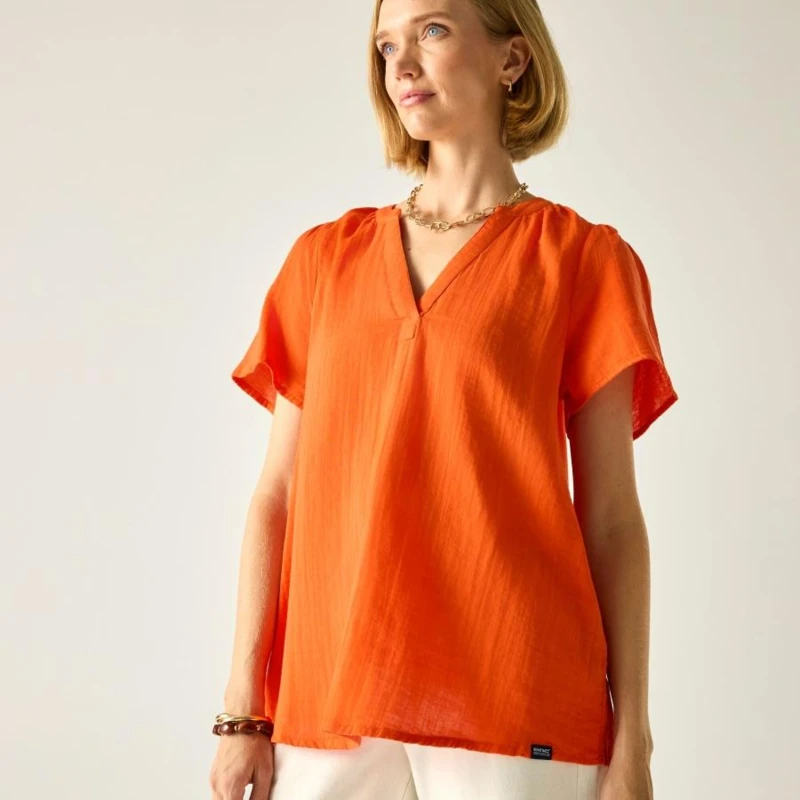 Női blúz, Prémium női könnyû pamut blúz – cheesecloth anyag, laza szabás, 120 g/m?, Ez a női blúz 100% pamut cheesecloth anyagból készült, 120 g/m? súlyban. A könnyû, légies szövésû pamut kellemes komfortot és természetes szellőzést biztosít meleg időben. A laza szabás és a rövid ujj kényelmes, könnyed megjelenést eredményez, ideális nyári viselethez., Főbb jellemzők:, 100% pamut cheesecloth anyag, 120 g/m?, Rövid ujjú kialakítás, Laza, kényelmes szabás, Könnyû, jól szellőző konstrukció, Ajánlott: Női nyári blúzként ideális mindennapi viselethez, utazáshoz, városi programokhoz és könnyû szabadtéri tevékenységekhez. Kiváló választás meleg időben, amikor fontos a természetes anyag és a komfort., Fenntarthatóság: A természetes pamut alapanyag kellemes viseletet és megfelelő tartósságot biztosít. A minőségi kivitel hozzájárul a hosszabb élettartamhoz, csökkentve a gyakori ruhacsere szükségességét.