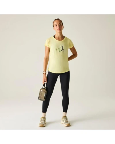 Női gyorsan száradó póló, Prémium női könnyû póló újrahasznosított poliészterlyocell, légáteresztő kivitel, Ez a női póló 80% újrahasznosított poliészter és 20% lyocell keverékéből készült, puha tapintású és jól szellőző anyagból. A könnyû szerkezet kellemes komfortérzetet biztosít egész napos viselet során, míg a grafikai nyomat modern, sportosan nőies megjelenést kölcsönöz., Főbb jellemzők:, 80% újrahasznosított poliészter / 20% lyocell könnyû, légáteresztő anyag, Grafikai nyomott részlet, Kerek nyakkivágás, Puha, komfortos viselet mindennapi használatra, Ajánlott: Női pólóként ideális hétköznapi viselethez, utazáshoz, városi programokhoz és könnyed szabadtéri tevékenységekhez. Kiváló választás, ha fontos a légáteresztés és a kényelmes, természetes érzet., Fenntarthatóság: Az újrahasznosított poliészter csökkenti a környezeti terhelést, a lyocell pedig természetes eredetû, kellemes viseletet biztosító szál. A tartós konstrukció hosszú élettartamot tesz lehetővé.