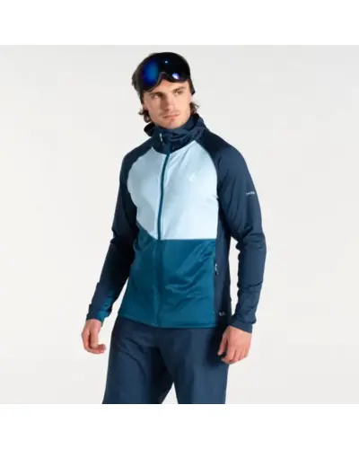 Férfi polár felső, Újrahasznosított kötött márványos poliészter, meleg polár háttal, fix kapucni, 2 db cipzáras alsó zseb