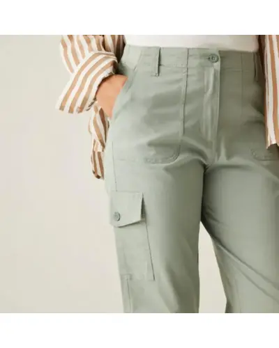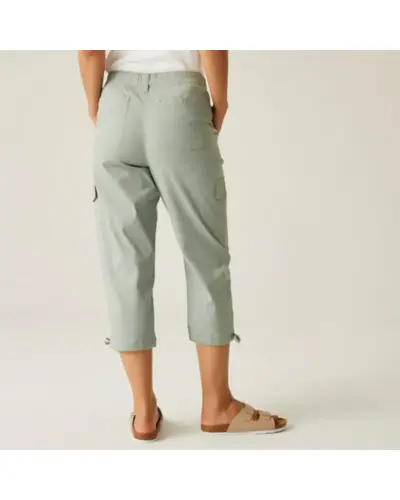 Női capri nadrág, Anyag:, 210gsm, 56% viszkóz / 40% BCI pamut / 4% elasztán twill anyag, Tulajdonságok:, Részben elasztikus derékrész a kényelmes illeszkedésért, Többzsebös kialakítás: elülső, oldalsó és hátsó zsebek, Garment washed kivitel – puhább tapintás és vintage megjelenés, Felfelé fordított alsó él, UV-védelem (UPF 50+), Ideal választás mindennapi viselethez, ötvözve a kényelmet, a funkcionalitást és a stílust.