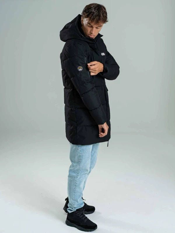 A SIRIUS egy rendkívül kényelmes, kapucnis steppelt kabát, amely 100% poliészter anyagból készült. Letisztult, modern megjelenését a mellrészen található diszkrét márkajelzés és az ujját díszítő hegymotívumos gumipatch teszi egyedivé. Praktikus zsebeivel ideális választás a mindennapokra, legyen szó városi sétáról vagy hétvégi kiruccanásról. A modell 189 cm magas és L-es méretet visel.
