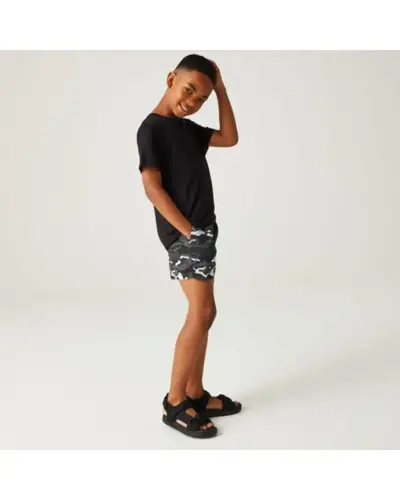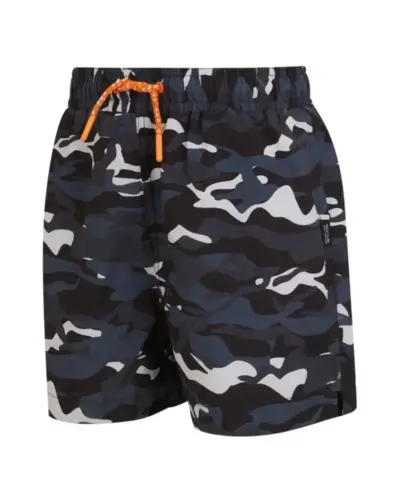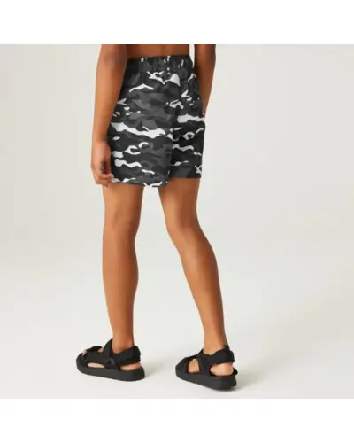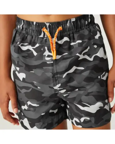 Gyerek fürdőnadrág, 100% újrahasznosított poliészter mikroszálas anyag, Gyorsan száradó anyag, Hálós rövid bélés 5-6 éves kortól, Gumis derékrész, 2 oldalzseb, UV védelem (UPF)