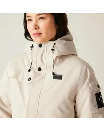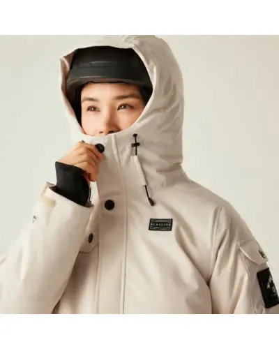 Női síkabát 30000 vízálló és lélegző, Anyag: Újrahasznosított vízálló és lélegző rugalmas szövet (ARED 30/30), Vízállóság/Lélegzőképesség: 30,000 mm vízállóság, 30,000 g/m?/24h lélegzőképesség, Felületkezelés: Víztaszító, Környezetbarát: PFC, PFOA, PFOS mentes anyag, Varrott Védelmek: Teljesen szalaggal ragasztott varratok a teljes vízállóság érdekében, Töltet: Újrahasznosított, magas melegséget biztosító töltet, Síspecifikus Jellemzők:, Síbérlet zseb, Fix hószoknya gél tapadással, Kapucni: Fix (grown on) technikai kapucni állítható pántokkal, Cipzár: Teljes hosszúságú cipzár patentos viharkabát széllel, Zsebek:, 1 felső ujjzseb, 1 mellzseb (dísz zseb), 2 alsó cipzáras zseb, 1 belső hálós zseb szemüveg lencsetörlő kendővel, Mandzsetta és Szegély:, Meleg belső ujjmandzsetta, Állítható mandzsetta és szegély, Bélés: Újrahasznosított poliészter bélés scrim hátpanellel az extra melegségért, Ez a síkabát a legmagasabb szintû védelmet és kényelmet kínálja az újrahasznosított ARED 30/30 anyagnak köszönhetően, amely kiemelkedő vízállóságot és lélegzőképességet biztosít. A kabát teljesen szalaggal ragasztott varratai és víztaszító felületkezelése garantálják a teljes vízállóságot, míg az újrahasznosított, magas melegséget biztosító töltet kiváló hőszigetelést nyújt. A fix technikai kapucni állítható pántokkal, a síbérlet zseb és a fix hószoknya gél tapadással kifejezetten síelésre tervezett jellemzők. A teljes hosszúságú cipzár patentos viharkabát széllel, valamint a felső ujjzseb, mellzseb (dísz zseb), alsó cipzáras zsebek és belső hálós zseb extra praktikumot és tárolási lehetőséget kínálnak. A meleg belső ujjmandzsetta és az állítható mandzsetta és szegély hozzájárulnak a maximális kényelemhez és védelemhez. Az újrahasznosított poliészter bélés scrim hátpanellel tovább fokozza a kabát melegségét és kényelmét. Ez a kabát ideális választás a síelők számára, akik a legjobbat keresik a teljesítmény, kényelem és környezetbarát megoldások terén.