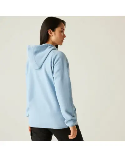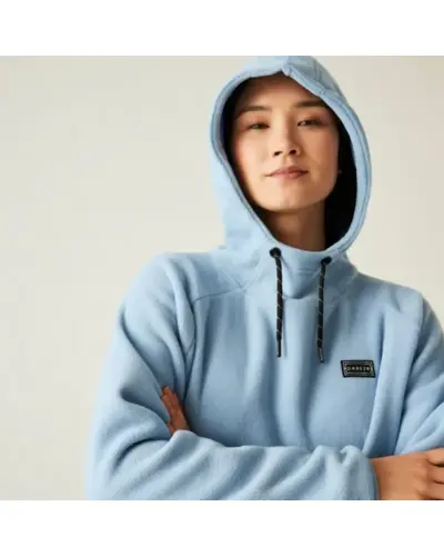 Női polár felső, női kapucnis polár pulóver puha, bolyhos belsejû poliészterből, Ez a kényelmes és meleg női polár pulóver ideális mindennapi viselethez, túrázáshoz és rétegezéshez. Puha, bolyhos belsejû poliészter anyaga (250 g/m?) kellemes hőérzetet biztosít, miközben tartós és könnyen kezelhető. A húzózsinóros kapucni állítható illeszkedést nyújt, a két alsó zseb pedig praktikus tárolást vagy kézmelegítést tesz lehetővé. Laza szabása garantálja a komfortot egész nap., Puha, bolyhos belsejû poliészter anyag 250 g/m?, Állítható húzózsinóros kapucni, Két alsó zseb, Laza szabás a kényelemért, Ajánlott: prémium női kapucnis polár pulóver túrázáshoz, szabadidős tevékenységekhez és sportos mindennapi viselethez.