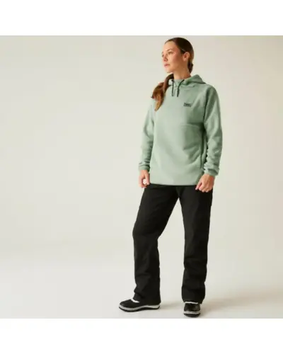 Női polár felső, női kapucnis polár pulóver puha, bolyhos belsejû poliészterből, Ez a kényelmes és meleg női polár pulóver ideális mindennapi viselethez, túrázáshoz és rétegezéshez. Puha, bolyhos belsejû poliészter anyaga (250 g/m?) kellemes hőérzetet biztosít, miközben tartós és könnyen kezelhető. A húzózsinóros kapucni állítható illeszkedést nyújt, a két alsó zseb pedig praktikus tárolást vagy kézmelegítést tesz lehetővé. Laza szabása garantálja a komfortot egész nap., Puha, bolyhos belsejû poliészter anyag 250 g/m?, Állítható húzózsinóros kapucni, Két alsó zseb, Laza szabás a kényelemért, Ajánlott: prémium női kapucnis polár pulóver túrázáshoz, szabadidős tevékenységekhez és sportos mindennapi viselethez.