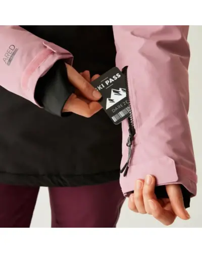 Női prémium síkabát, Prémium női síkabát Ared 15/15, vízálló, légáteresztő, újrahasznosított anyagból, teljes sífelszereltséggel, Ez a stílusos és funkcionális női síkabát Ared 15/15 membránnal készült, amely 15 000 mm vízállóságot és 15 000 g/m?/24h légáteresztést biztosít. Újrahasznosított, magas hőszigetelésû bélése, teljesen vízzáró ragasztott varrásai és tartós vízlepergető felülete megbízható védelmet nyújt a hideg, havas és nedves időjárásban. A teljes sífelszereltség mellett praktikus részleteket kínál, mint a technikai kapucni, a nagy méretû elülső tárolózseb és az oldalsó, kétirányú cipzár, amely kényelmes mozgást és könnyû felvételt biztosít., Vízálló és légáteresztő anyag Ared 15/15 (15 000 mm / 15 000 g/m?/24h), Teljesen vízzáró ragasztott varrások, Újrahasznosított, magas hőszigetelésû bélés, PFC-, PFOA-, PFOS-mentes környezetbarát kivitel, Hozzáépített, állítható technikai kapucni, Nagyméretû elülső tárolózseb patentos fedéllel, Tartós vízlepergető (DWR) felületkezelés, Teljes sífelszereltség: síbérlet-zseb, fix hófogó gélcsíkkal, Oldalsó kétirányú, hosszú cipzár a kényelmes felvételért, Újrahasznosított poliészter bélés hővisszatartó hátpanellel, Állítható mandzsetták és alsó szegély, Ajánlott: prémium női síkabát síeléshez, snowboardozáshoz és hideg, nedves téli időjáráshoz.